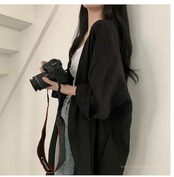 2024 春夏シャツカーデ カーディガン ロングシャツ カラーシャツ UV対策 ルーズ オーバーサイズ 長袖 ゆったり BF風 シンプル カジュアル 韓国ファッション