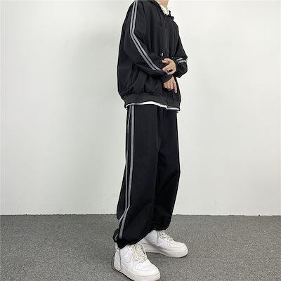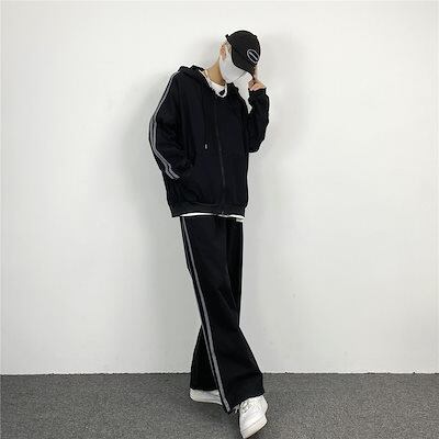 2024 春秋 2点セット ユニセックス トップス お出かけ 羽織り ショート丈 セットアップ ルーズ サイド ボトムス ストレート系冬 ゆったり サイズワイドシルエット リラックストラック