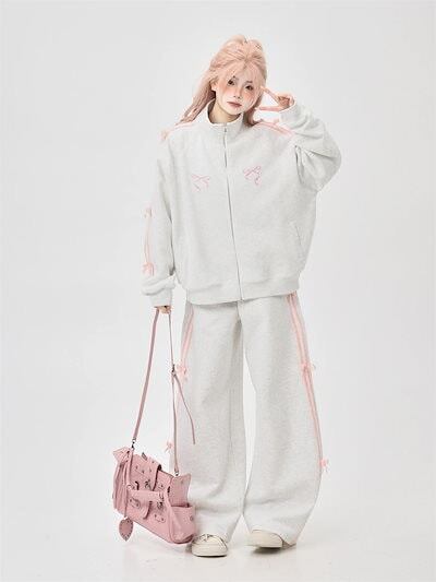 2024 春秋 2点セット トップス お出かけ 羽織り 韓国 レディース フルラウンドヘム ルーズ サイド ボトムス ストレート系冬 ゆったり サイズワイドシルエット上下リラックストラック