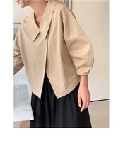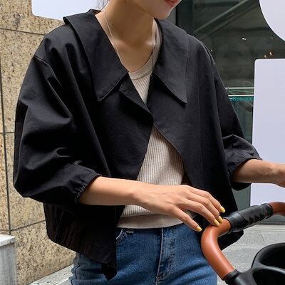 2024秋冬アウター ジャケット ショートコート Vネック 長袖 9分袖 襟 秋 茶色 黒 おしゃれ かわいい 韓国ファッション レディース お出かけ