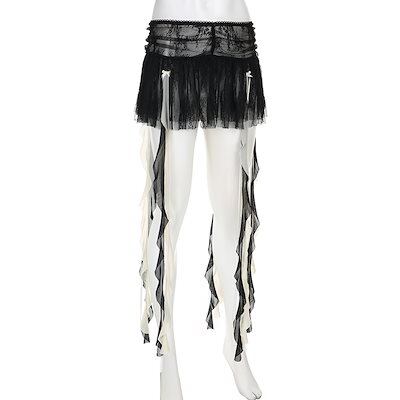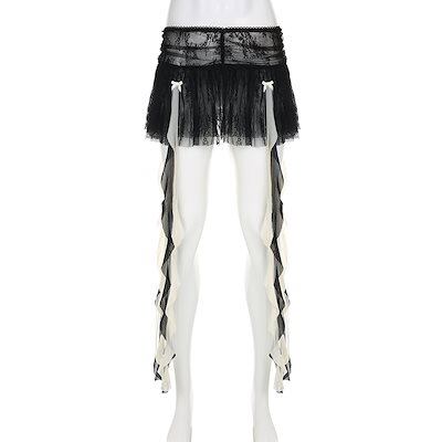 2024 夏秋 スカート かわいい ミニ丈 ハイウエスト 透け感 レトロデザイン 脚長効果 美脚効果 細見えボトムス 夏 黒 カジュアル おしゃれ 甘め フレンチ 韓国系ファッション2