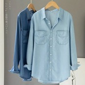 デニムシャツレディース長袖トップス カーディガン24人気新作シアーシャツ