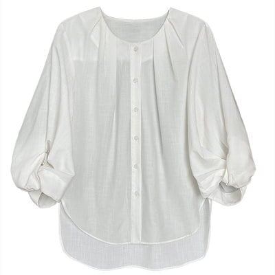 韓国ファッション 2024秋新作 トップス レディース シャツ シアーシャツTシャツ ブラウス レディース 長袖シャツ ロングTシャツ 着痩せ ランタン袖 大人可愛い/トップス/ブラウスtシャツメガ割