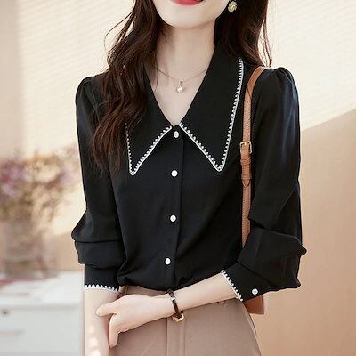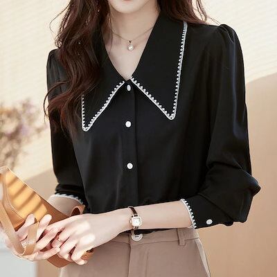 人気の新作今っぽシアーシャツ トップスOL 通勤 高級長袖ドールネックシャツシックな レディース 韓国ファッション