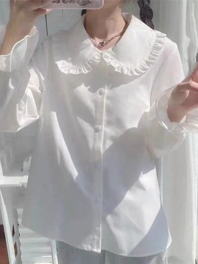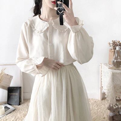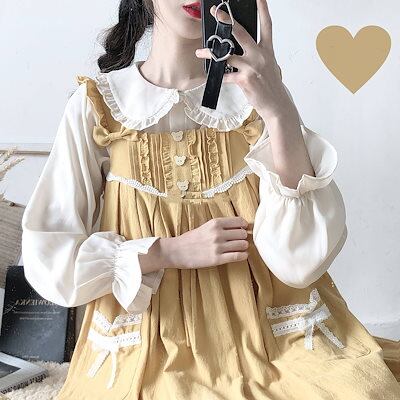 新作 春夏秋の女子学生用ドールカラーシャツソフトガールレースロリータ韓国 ゆったり長袖ボトムストップストレンド ロリータシャツブラウス レディース今っぽシアーシャツ