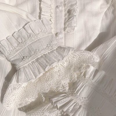 新作ロリータシャツブラウス レディース ロリータ風春秋新作女の子フリルレースロリータ長袖ジャガードシャツ和風今っぽシアーシャツ