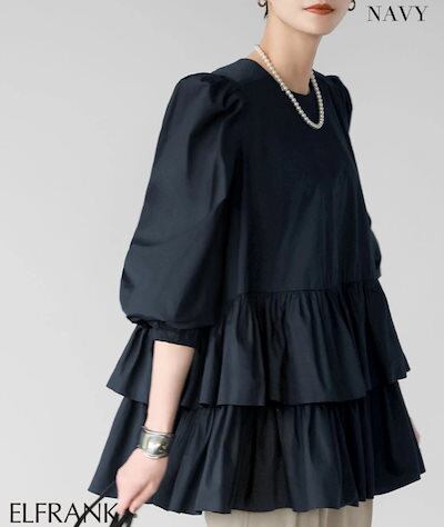 【人気商品!】【急速出荷】2025初春新作 レディース ブラウス おしゃれ 気質 フリル ロングブラウス 七分袖 体型カバー 大きいサイズ 長袖 シャツ ブラウス