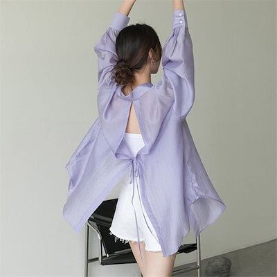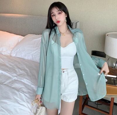 tシャツ 今っぽシアーシャツ使える!シフォンブラウス今っぽシアーシャツブラウストップス春夏の新韓版シンプル日焼け止めシャツの上着トップス 長袖 ボーダー Tシャツ ロングTシャツ シャツ レディース