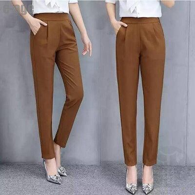 安いテーパードパンツ チノパン ボトムス パンツ レディース 3color ロングパンツ 九分丈 スラックス テーパード 美脚 ハイウエスト 着痩せ 無地