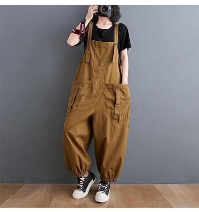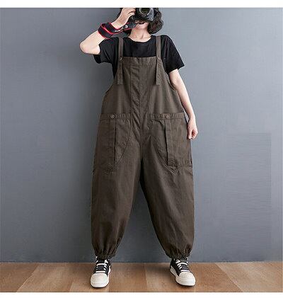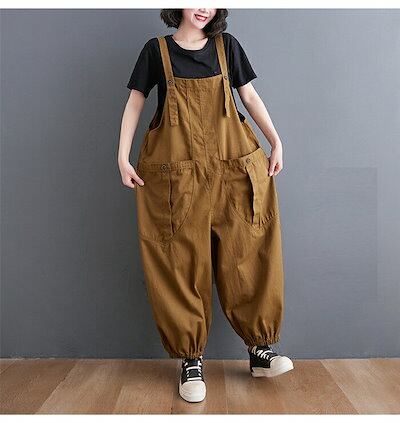 サロペット 大きいサイズ オーバーオール オールインワン チノパン ビッグシルエット パンツ ボトムス 絞り裾 無地 作業着 仕事着 マタニティ レディース ユニセックス メンズ サロペットパンツ ロ
