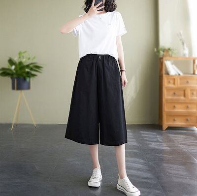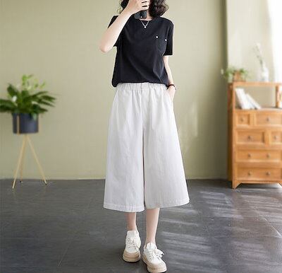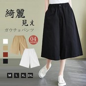 ガウチョパンツ レディース パンツ 7分丈 ワイドパンツ スカーチョ きれいめ 大きいサイズ ウエストゴム ボトムス コットン 無地 春夏 体型カバー ゆったり フレアパンツ チノパンツ 薄手 楽チン