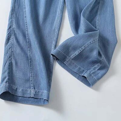 サルエルパンツ レディース デニム テンセル ズボン ハイウエスト 涼感 ロングパンツ ウエストゴム ポケット パンツ ストレート ドロスト イージーパンツ ロング丈 チノパンツ ジーパン 着痩せ ス