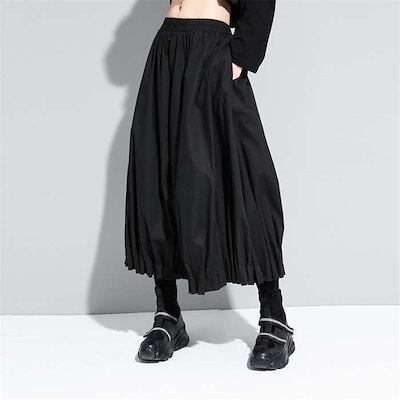 タックボリュームパンツ ワイドパンツ レディース スカート風 ドレープ チノパンツ ボトムス 裾タック ロングパンツ ガウチョ ボリューム 無地 メンズ ユニセックス ゆったり 黒 モード系 ダンス