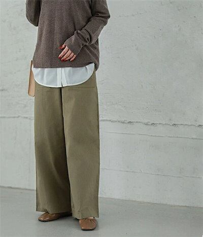 ワイドパンツ レディース 春秋 パンツ ロングパンツ チノパン ワイド ロング丈 ガウチョ ウエストゴム チノパンツ 無地 ガウチョパンツ ボトムス ズボン ゆったり 体型カバー 着?せ カジュアル
