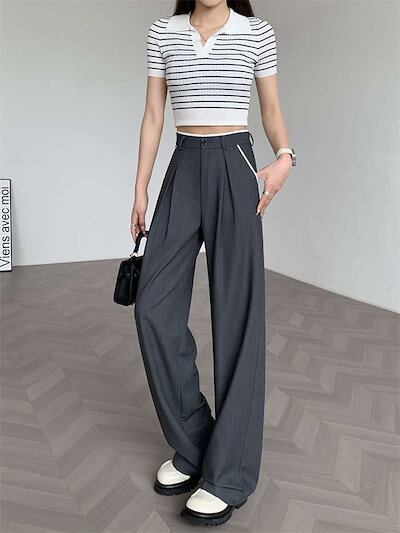 ワイドパンツ パンツ レディース ボトムス ボトム ロング タックパンツ スーツパンツ チノパンツ ストレートパンツ ガチョウパンツ ワイド 美脚パンツ ハイウェスト 無地 ゆったり サイドポケット