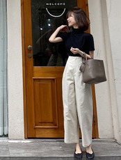 ワイドパンツ レディース ハイウエストスリムストレート 春夏 薄手 カジュアルドレープ感 九分丈パンツ 美脚 韓国ファッション スラックス