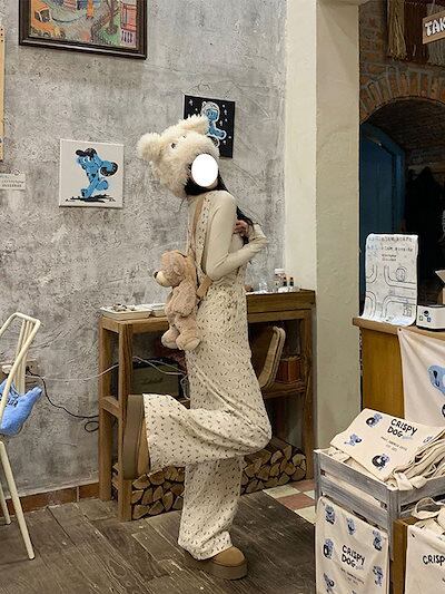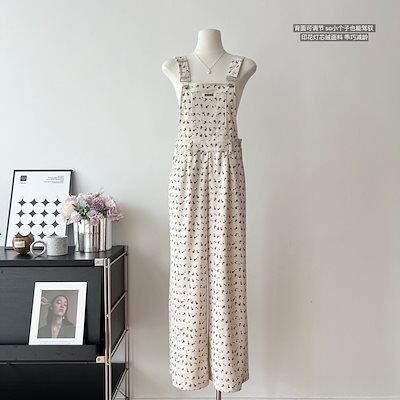 韓国 コーデ完成 花柄コーデュロイサロペット春先ストレートワイドパンツ サロペット オールインワン レディース ワイドパンツ サロペットパンツ