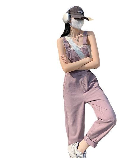 2025年新作 韓国 コーデ完成 サロペット オールインワン レディース ストレートジーンズ 夏春夏 ゆったりパンツ ワイドパンツ サロペットパンツ