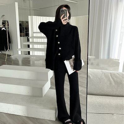 セットアップ 韓国ファッション 2024新作 運動セット涼しく楽ちんセットニットセットアップ 上下セット 秋冬 レディース セーター ニットパンツ ワイドパンツ ゆったり スリット入り