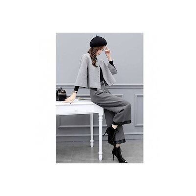 韓国のファッションスーツセットアップ ワイドパンツ レディース 秋冬 パンツ ウール混 ガウチョパン