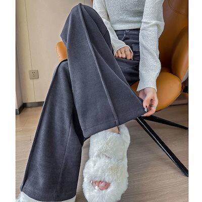 秋冬のワイドパンツ 韓国ファッション 裏起毛パンツ カジュアル ワイドパンツ スウェットパンツ ワイドパンツレディース秋冬 厚手 防寒 ハイウエスト パンツ クリスマス