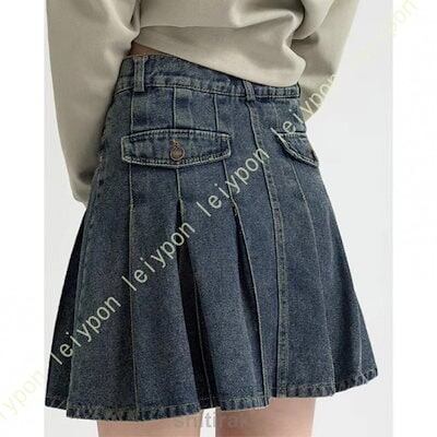 レディース デニムスカート ミニ丈 インナーパンツ付 夏 膝上 プリーツスカート デニム 無地 ハイウエスト シンプル フレアスカート 台形スカート aライン