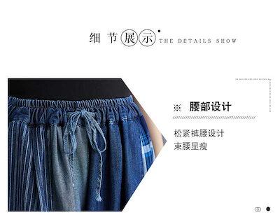 「ファットガール」 2024夏新品 レトロ デニム ドッキング ワイドパンツ フレア 大きいサイズ 巾着 ゴム 体型カバー レディース キュロットスカート ロングパンツ メガ割