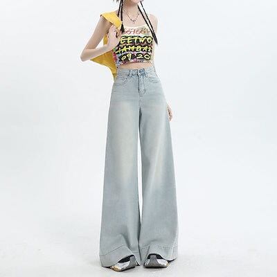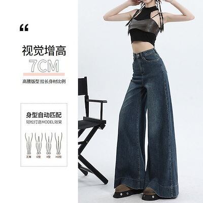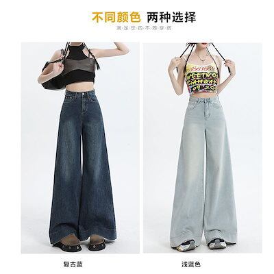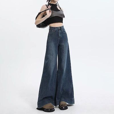 【3日以内出荷】脚長効果!デニムパンツ ワイドレッグジーンズ レディース ハイウエスト ワイドジーンズ フレアパンツ モッピング・パンツ ストレートパンツ 韓国ファッション