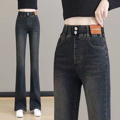 スキニーパンツ春新作レディースハイウエストカジュアル馬蹄フレアパンツ