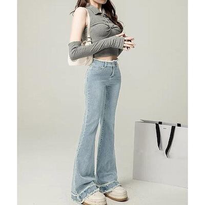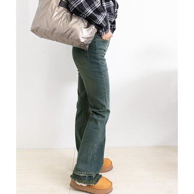 脚長効果!デニムパンツ フリンジ フレアパンツ ファッション