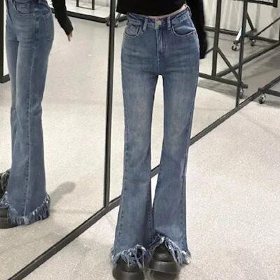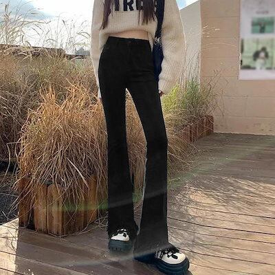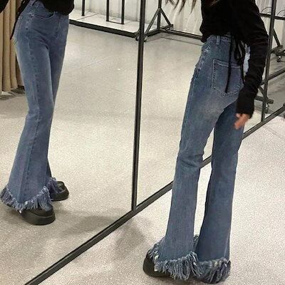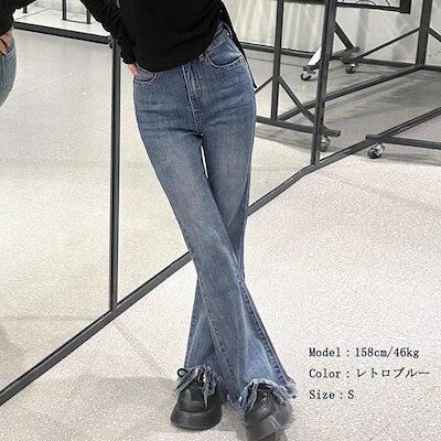 脚長効果!デニムパンツ フレアパンツ レディース美脚 ファッション