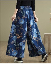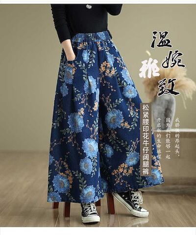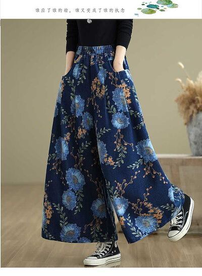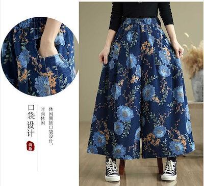 「ファットガール」 2025春 ワイドパンツ 花柄 デニムパンツ ゴム 大きいサイズ 体型カバー レディース スラックス フレア メガ割