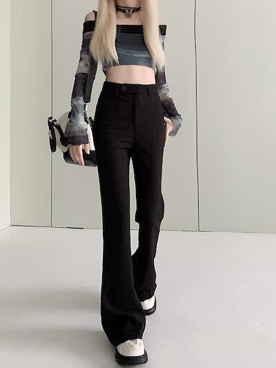 2024 春秋 パンツ モップパンツ ロングパンツ ワイド ハイウエスト 脚長効果 美脚効果 細見え 夏 カジュアルフィット かわいい 韓国系ファッション レディース お出かけ