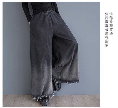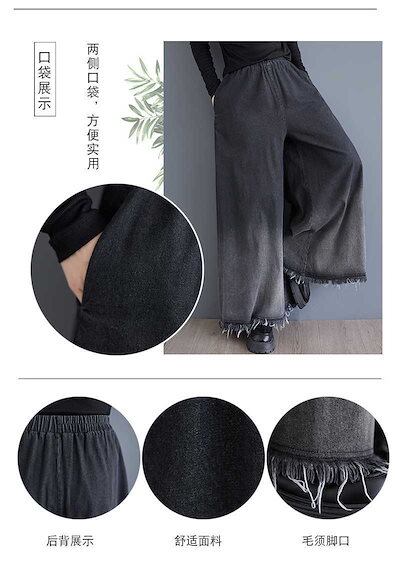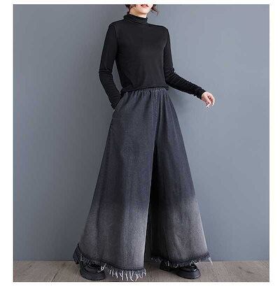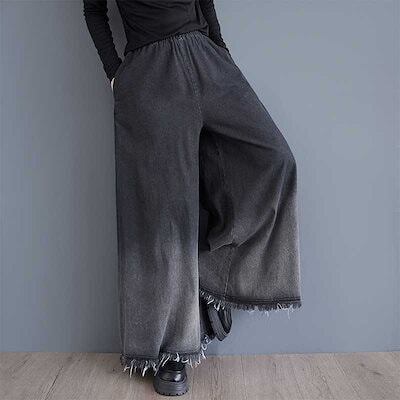 「ファットガール」 2024秋新品 デニム ワイドパンツ 大きいサイズ 体型カバー レディース フレア ゴム グラデーション ジーンズ ロングパンツ メガ割