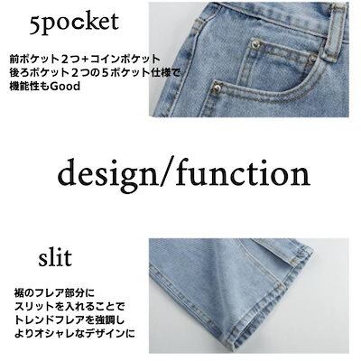 デニムパンツ フレアパンツ スリット デニムパンツ ジーンズ レディース Gパン ズボン ベルボトム ロングパンツ