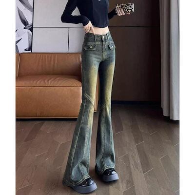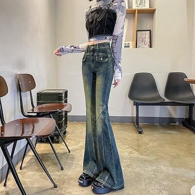 デニムパンツ デニムパンツ デニム ジーパン ジーンズ ロングパンツ ロング フレアパンツ ワイド ブーツカット ボトムス レディース レディー 韓国ファッション