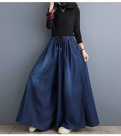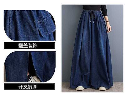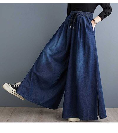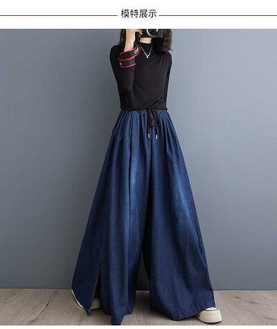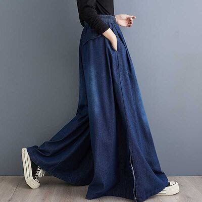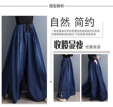 「ファットガール」 2024秋冬新品 ワイドパンツ ハイウエスト ゴム フレア スリット 大きいサイズ 体型ーカバー レディース ブーツカット ロングパンツ メガ割