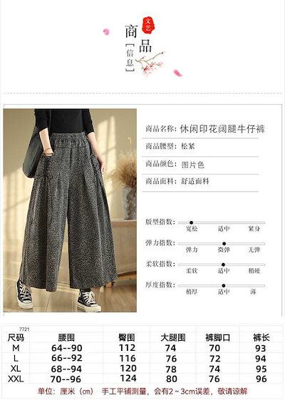「ファットガール」 2024秋新品 デニム 豹柄 ワイドパンツ ゴム 大きいサイズ 体型カバー レディース ロングパンツ フレア メガ割