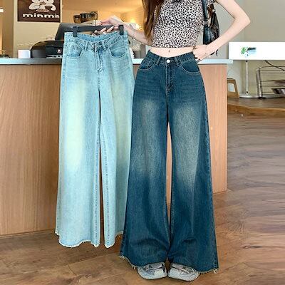 2025新作 カジュアル レディースジーンズ ロングパンツ ロングデニム ハイウエスト デニムボトムス ワイドパンツ 脚長効果!スキニーパンツひんやりボト デニムパンツ 大きめサイズ