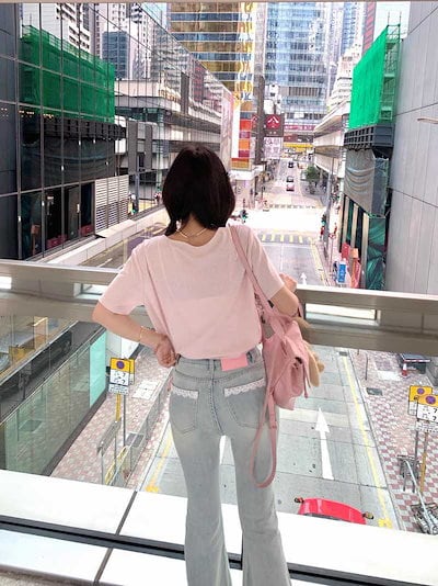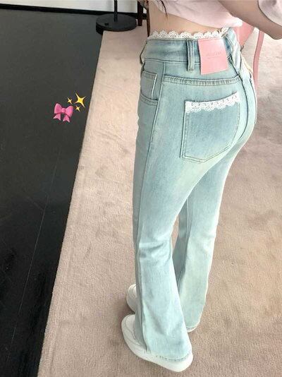レースデザイン フレアデニムパンツ ハイウエスト ヒップアップ スキニージーンズ