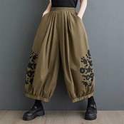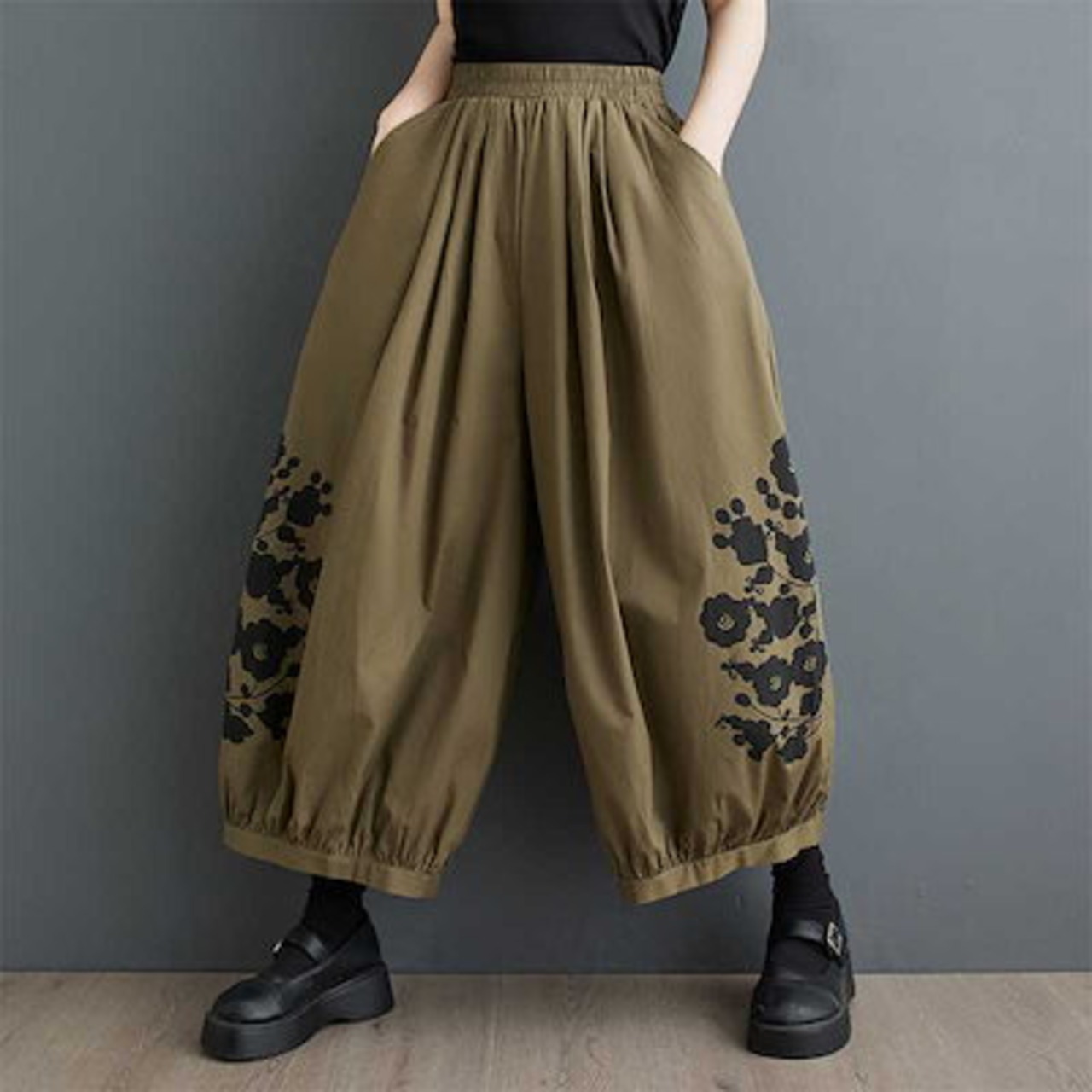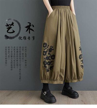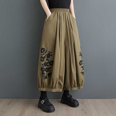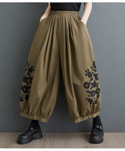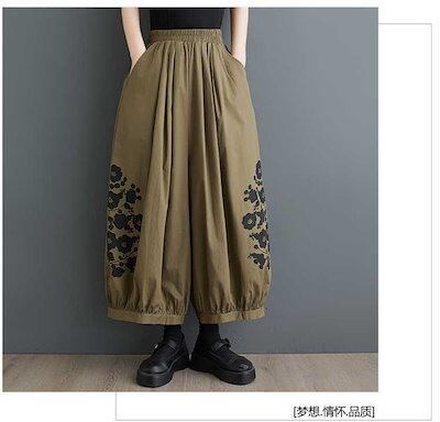 「ファットガール」 2024夏新品 九分丈 ワイドパンツ 花柄 大きいサイズ 体型カバー レディース ゴム ストレート ロングパンツ メガ割