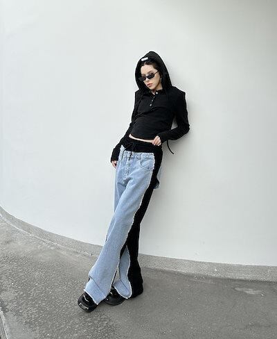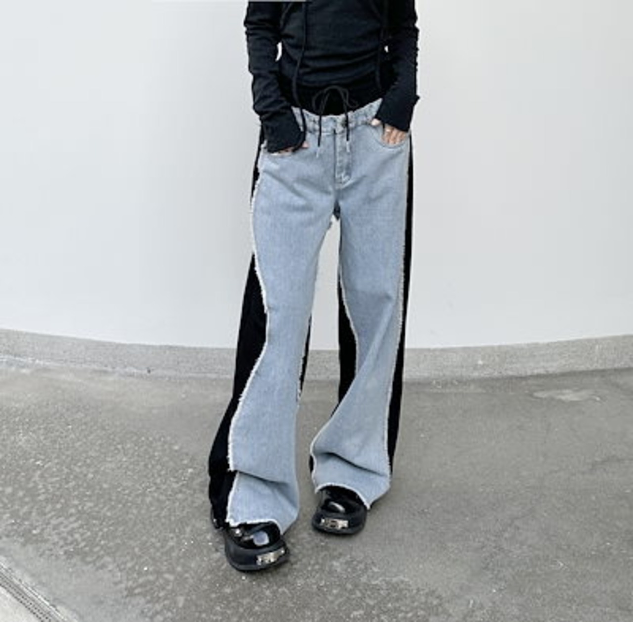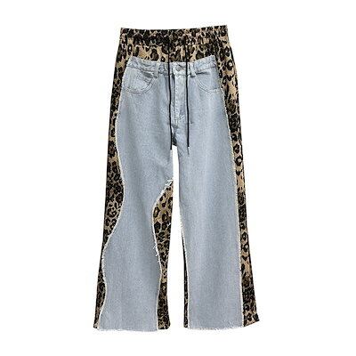 【J.Fashion】 豹柄ドッキング デニムパンツ おしゃれ 個性的なデザイン レディース ジーンズ ストレート スラックス メガ割