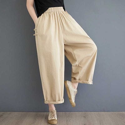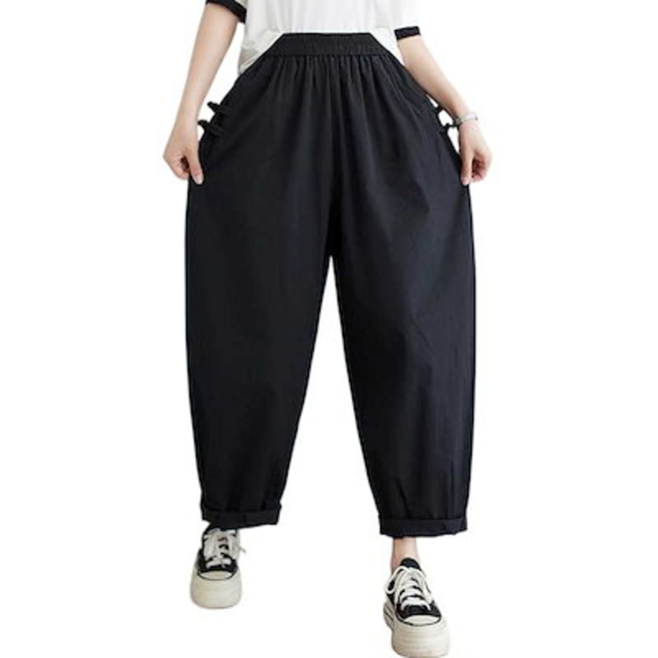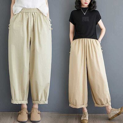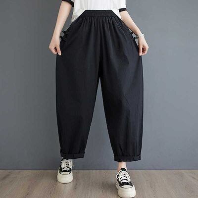 「ファットガール」 2024夏新品 レトロ ロングパンツ ゴム ハイウエスト ストレート 体型カバー 大きいサイズ ゆったり レディース