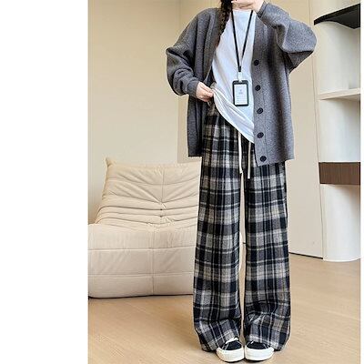 激?れ人気商品ワイドパンツ 韓国ファッションパンツ レディース 秋冬新作 レトロ ストレートパンツ ハイウエスト ツイード パッド付き ワイドパンツ