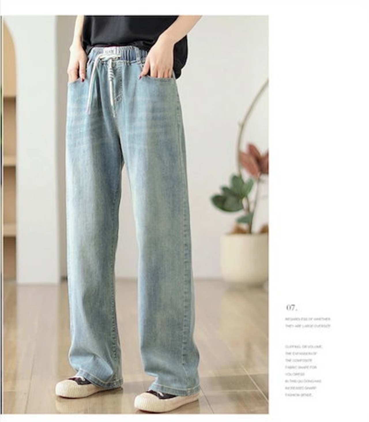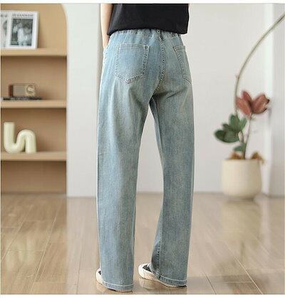デニムパンツ 夏 レディース デニムワイドパンツ 大きいサイズ ゆったり ジーンズ ストレートワイドパンツ 柔らか ボトムス ジーパン 美脚 春夏秋 カジュアル ウエストゴム 体型カバー 着回し 大人