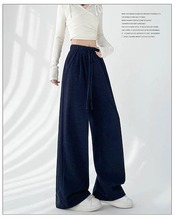 ワイドパンツ レディース ストレートパンツ デニム風 ワイド パンツ 春秋 ウエストゴム イージーパンツ ロング丈 ボトムス ストレート リラックス ハイウエスト ゆったり 楽ちん おしゃれ ブルー