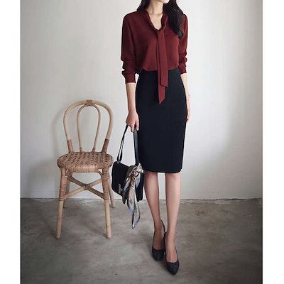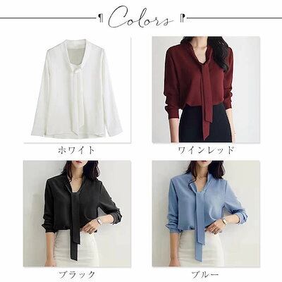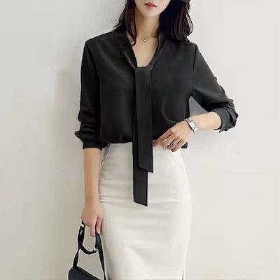 ボウタイブラウス 長袖ブラウス ボウタイ リボン ブラウス 白ブラウス レディース プルオーバー 長袖シャツ Vネック フォーマル オフィス カジュアル きれいめ 上品 無地 シンプル おしゃれ 大人