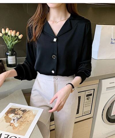 シャツ ブラウス レディース プルオーバー 長袖 トップス ゆる シャツ カジュアル フォーマル シンプル 普段着 通勤 OL リボン 夏 春 秋 ホワイト ブラック