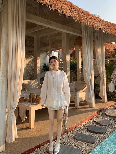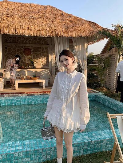2025 春夏トップス シャツ ブラウス 長袖おしゃれ ラウンドネック 春 白 ホワイト ゆったり かわいい フレンチ 甘め おしゃれ 韓国ファッション レディースシルエットサイズお出かけ
