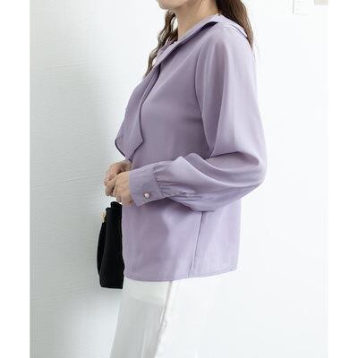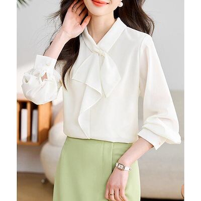 今っぽシアーシャツ リボンタイブラウス レディース長袖シャツ